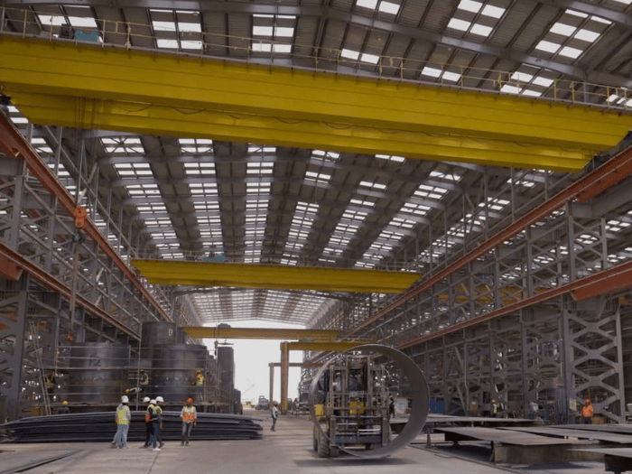 • Regarding overhead cranes, we have 21 cranes with lifting capacities of 5, 10, 32, and 110 tons. Regarding gantry cranes, we have 3 cranes with lifting capacities of 25, 50, and 60 tons.
