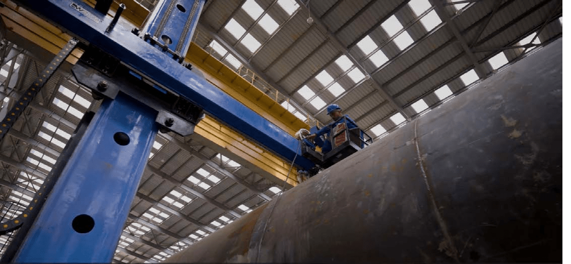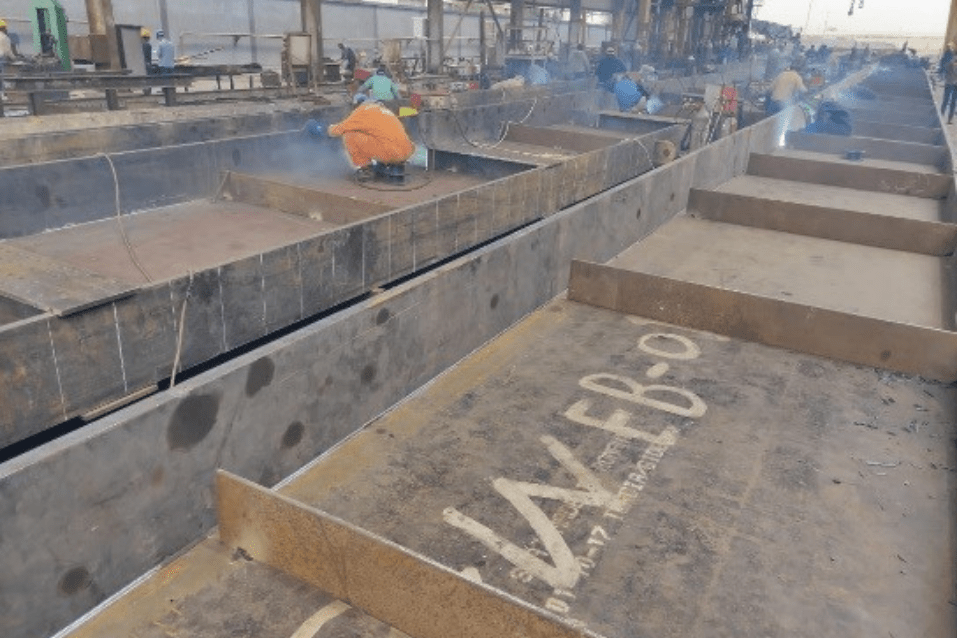 • Regarding horizontal welding machines, we have one machine for beam sections up to 1250 mm in height, 500 mm in width, and 12 m in length.